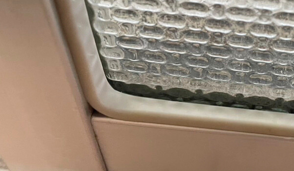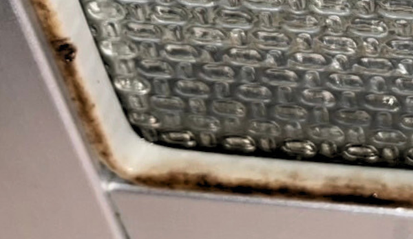 <結露でカビた窓枠>