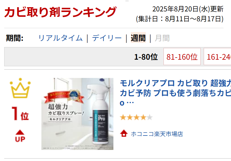 カビ取り剤部門で1位